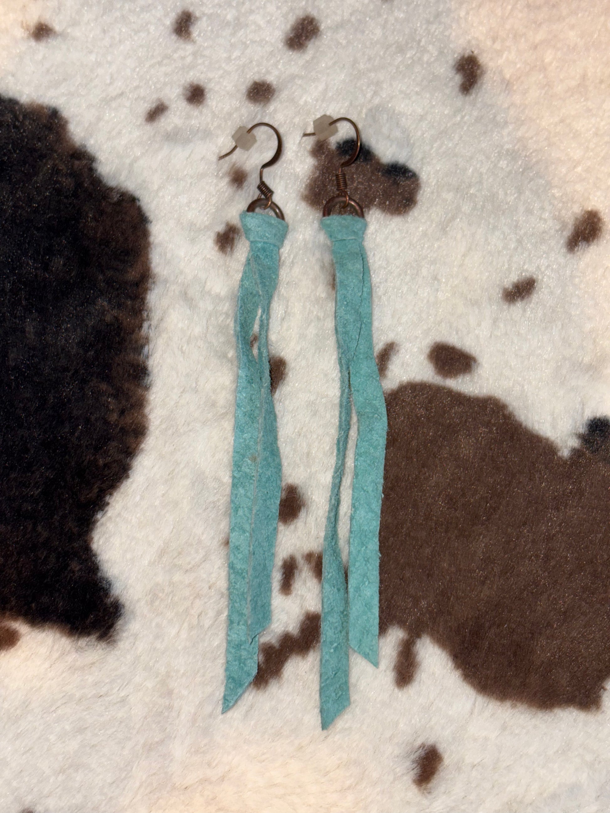 3-4" turquoise suede fringe earring with hypoallergenic hooks and extra lightweight feel
