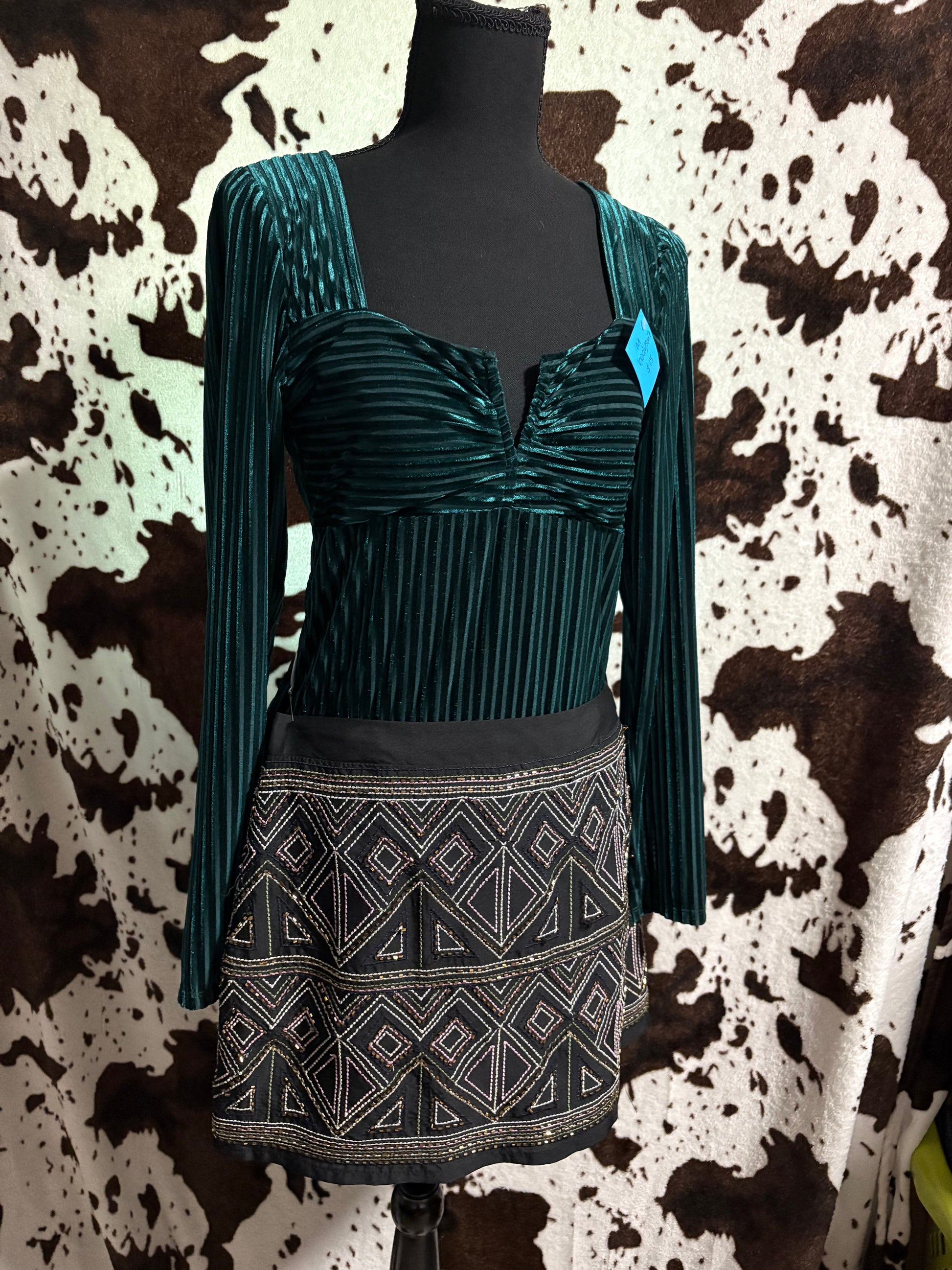 Medium lightly worn velvet bodysuit featuring a v detail in neckline. This top is super cute.